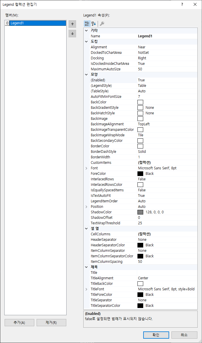 (Enabled): 계열 활성화 플래그를 가져오거나 설정합니다. 기본값은 True 입니다.