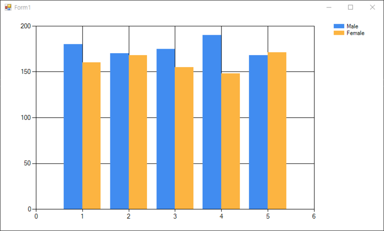 위 차트는 ChartArea1 이라는 이름의 ChartAreas 에 Male과 Female이라는 2개의 Series가 동시에 표현된 것입니다. 그래서 동일한 X/Y 축에 함께 표현된것입니다. ChartArea가 축(Axis) 속성을 다루는 이유입니다.