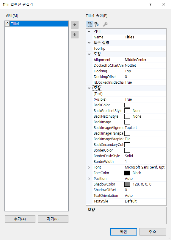 TitleForeColor 속성: 범례 제목 텍스트 색입니다.