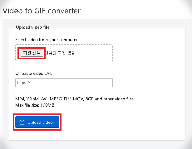 (MP4, WebM, AVI, MPEG, FLV, MOV, 3GP 파일 및 다른 비디오 형태의 파일만 가능하며,