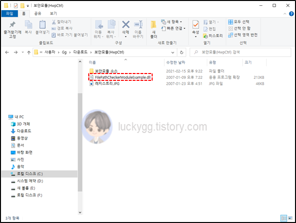 압축을 해제하면 아래 이미지와 같이 FilePathCheckerModuleExample.dll 파일을 확인할 수 있습니다.