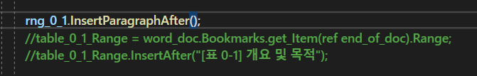 Range.InsertParagraphAfter()는 개행한다는 뜻이다.