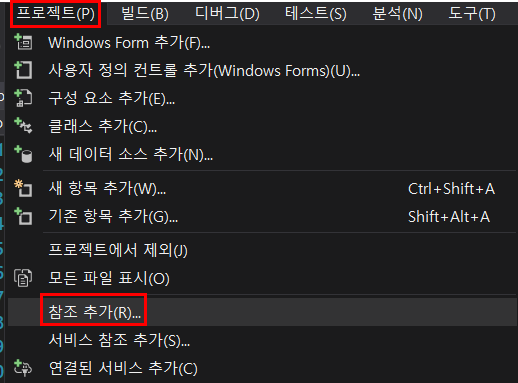 선언해주기 위해서 아래와 같이 참조를 추가해준다.
