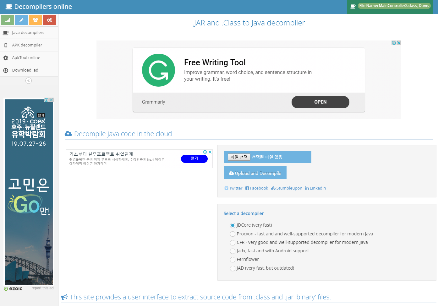 [Decompilers online] java jar, class 디컴파일 온라인 웹 페이지